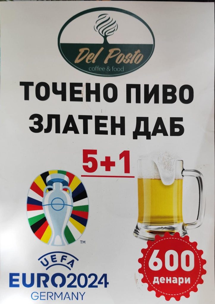 Имено, Del Posto за страсните навивачи на европското фудбалско првенство нуди екста понуда 5+1 гратис точено пиво, а воедно и одлична атмосвера и амбиент каде што опуштено ќе можете да уживате со фудбалските натпревари.. Се гледаме во Del Posto, на ладно пиво и одлична храна, а од Del Posto – Прилеп ветуваат дека и во наредниот период ќе продолжат да Ве изненадуваат со нови, екстра понуди, и богати препознатливи вкусови.