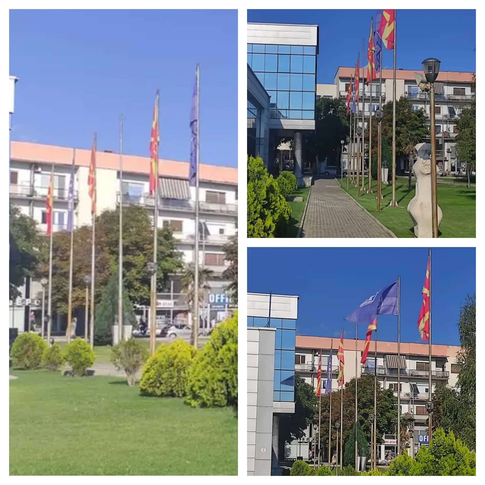Додека за големото државно знаме во центарот на градот добивме одговор од надлежните служби во Владата на Република Македонија, затоа што тоа е во нивна надлежност, дека истото ќе биде заменето со ново во наредните денови.