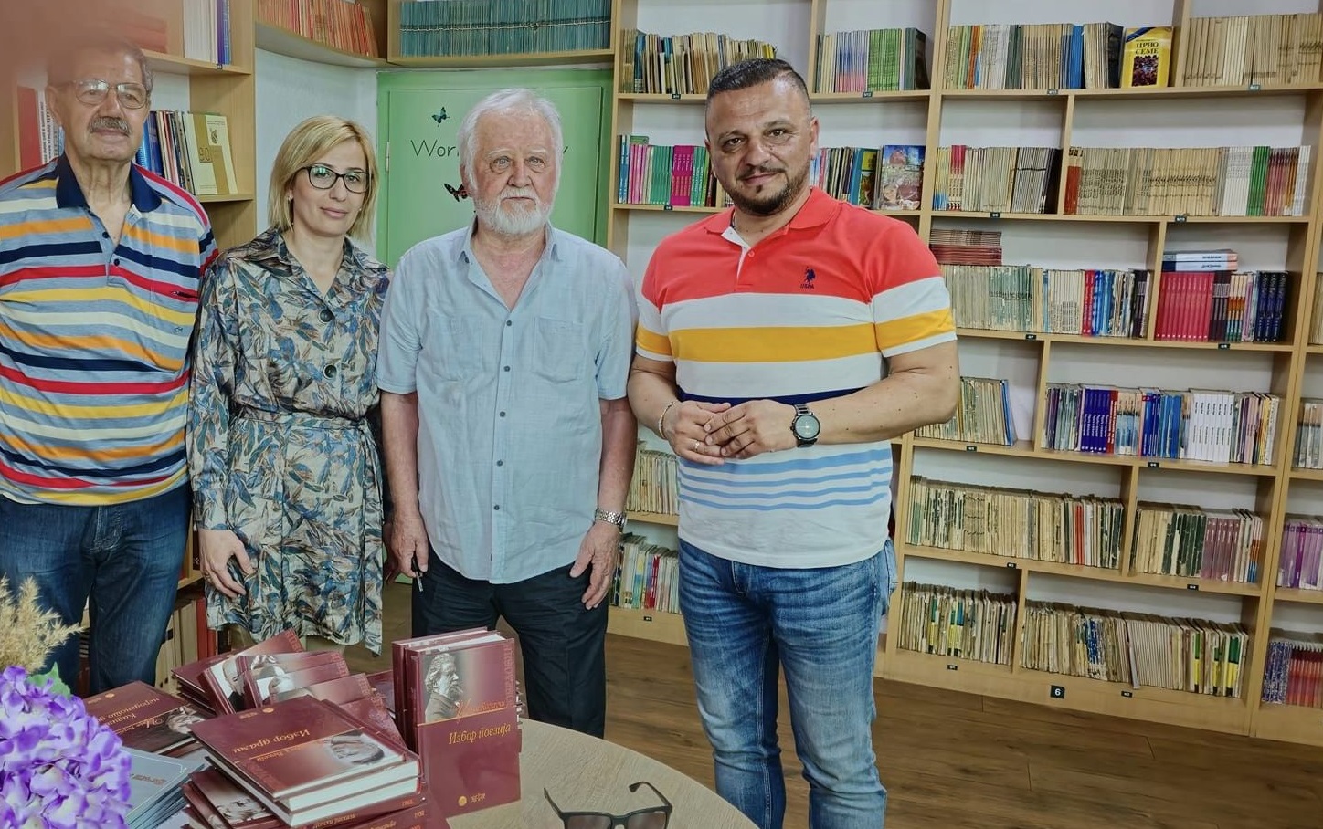 “Денес во посета на нашето училиште ни беа поетот Илко Димитриески и поранешниот директор на Универзитетската библиотека на Македонија Миле Бошески кои донираа книги за училишната библиотека, со што го збогатија нашиот библиотечен фонд!