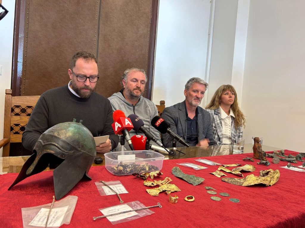“Eксклузивно ги презентираме вредните наоди откриени на локалитет во Охридско-струшкиот регион. Откритијата се резултат на последните археолошки ископувања кои го осветлуваат животот на цивилизациите што оставиле траги од минатото, но чија култура и влијание се и понатаму значајни за нашето разбирање на историскиот контекст. Целата приказна започнала во 2020 година кога Шефит Шемшедини при извршување на земјоделски работи во атарот на с. Корошишта, Струшко открива бронзен шлем кој потоа го предава во НУ Завод и музеј, Охрид. Во 2023 година тимот од НУ Археолошкиот музеј Скопје предводен од сегашниот раководител добива согласност од сопственикот на нивата Букури Шемшедини за вршење археолошки истражувања. Археолошките истражувачки активности се дел од реализација на проектот „Систематски археолошки истражувања на архајската некропола Корошишта“ од Годишната програма на НУ Археолошкиот музеј, финансирана од Министерството за култура и туризам за 2024 година. Раководител на проектот е м-р Перо Арџанлиев, археолог советник-кустос од НУ Археолошки музеј и м-р Драган Танески археолог виш кустос од НУ Завод за заштита на спомениците на културата и Музеј-Охрид.
