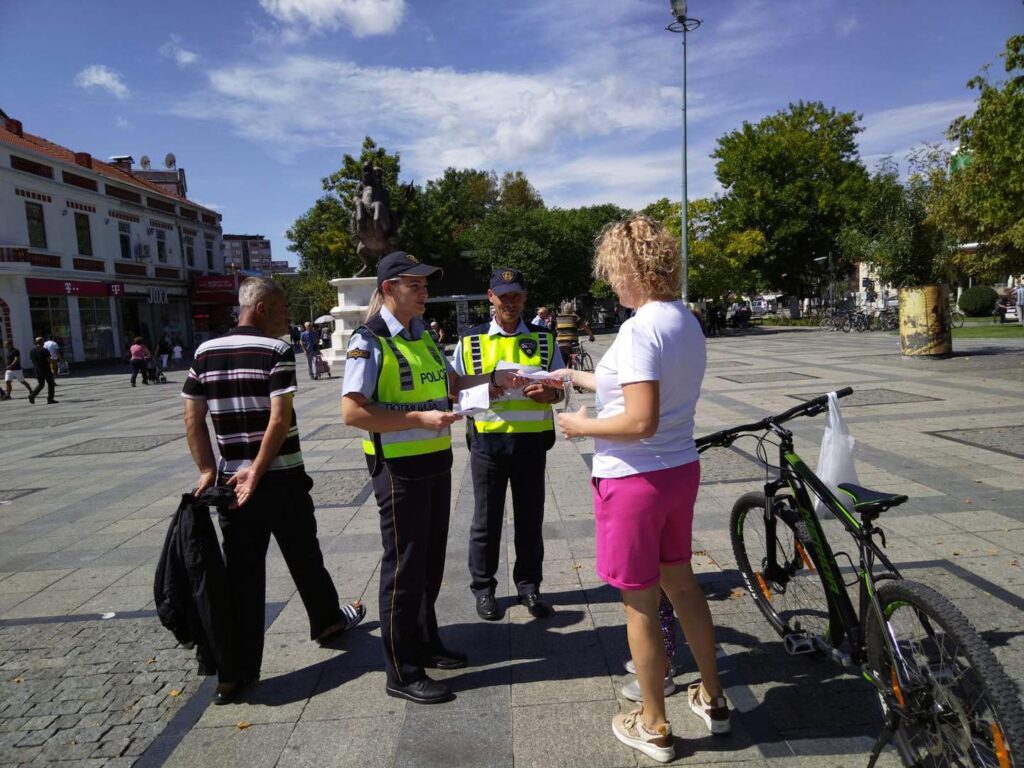 Во текот на вчерашниот ден (10.09.2022) во центарот на Прилеп од страна на полициски службеници од Полициското одделение за безбедност на патниот сообраќај Прилеп беше реализирана превентивна активност за поголема безбедност на пешаците, во чии рамки граѓаните кои управуваа велосипеди на места кои се наменети како пешачка зона, беа запознати со законските прописи од Законот на безбедност на сообраќајот на патишта, усно предупредени и им беа поделени летоци со едукативна содржина, со укажување дека казната за таков вид прекршок изнесува 50 евра согласно чл 96 ст. 5/7 од Законот за сообраќај.