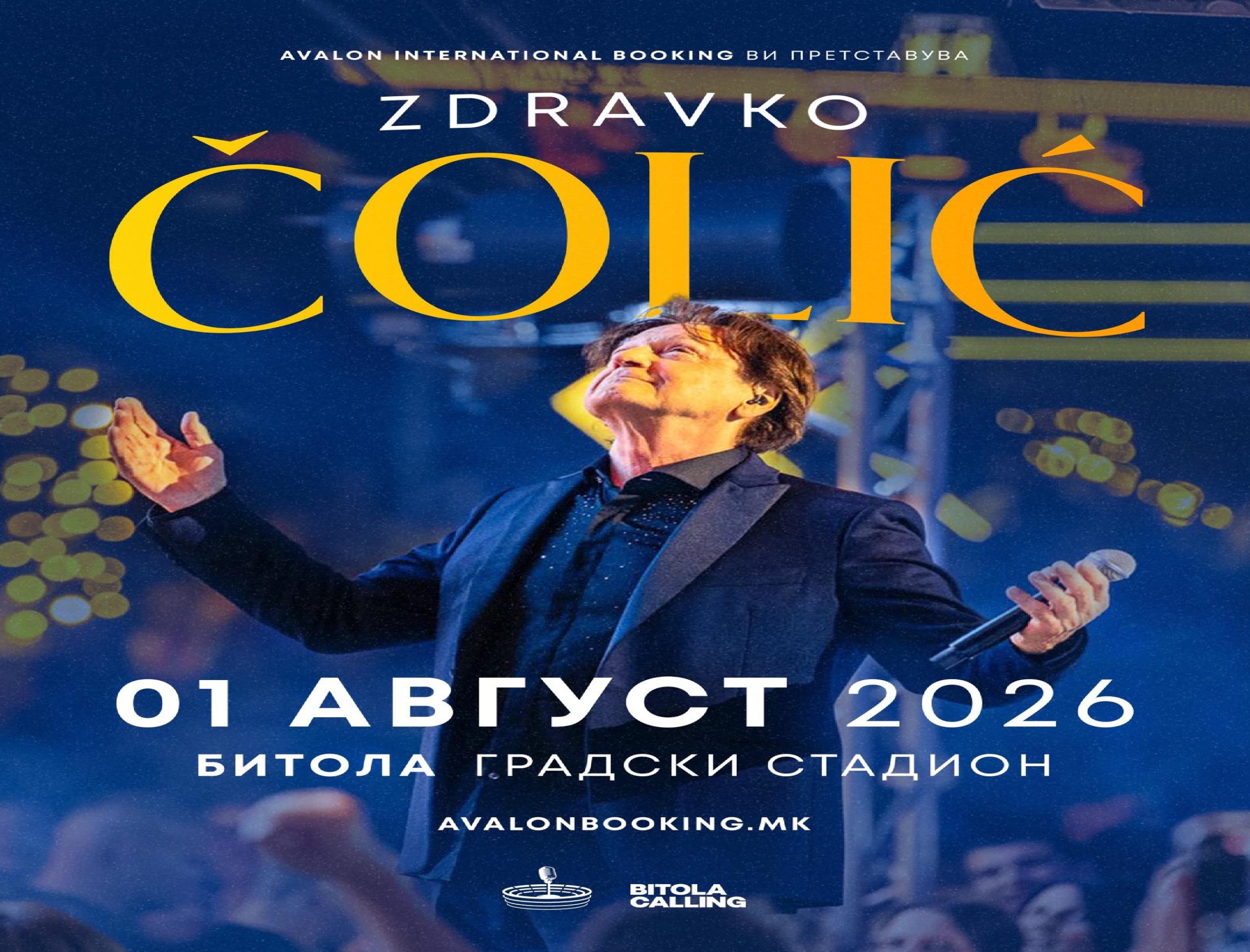 „Големо задоволство ни е да Ви најавиме дека, без сериозна конкуренција, најголемата регионална ѕвезда на сите времиња, Здравко Чолиќ, оваа летна сезона ќе одржи само еден концерт за цела Македонија, и тоа на 1 август, во преубавата и монументална, за нас омилена – Битола! Здравко доаѓа во Македонија на Стадионот ,,Петар Милошевски” во Битола во време во кое, со своите концерти, ги урива сите рекорди по посетеност ширум регионот“ стои во објавата на „Авалон“.