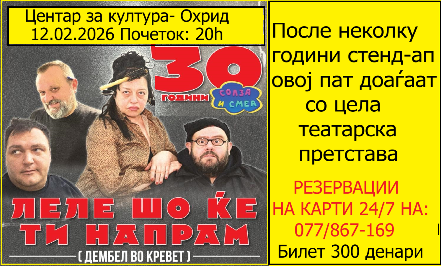 Премиера во Охрид на 12.02.2026! Ова е најдобрата претстава од Солза и смеа!! Овој пат доаѓаат со ЦЕЛА театарска претстава -КОМЕДИЈА