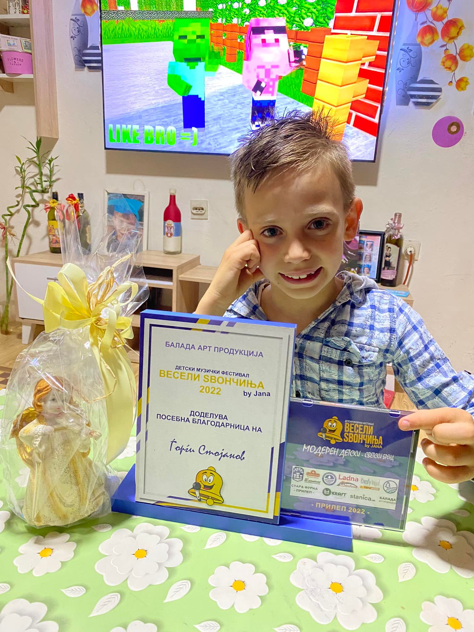 Талентираниот прилепчанец Ѓорѓи Стојанов пред еден месец имаше спектакуларен успешен настап на Детскиот музички фестивал “Весели Ѕвончиња by JANA”, фестивал кој по четврт пат се одржа во Прилеп. Имено, Ѓорѓи оваа година настапи со песната “Манекен сум јас”, песна која што специјално за него ја направи Гоце Илиески Балада (музика и текст), а аранжманот за оваа песна го направи Рубин Димкоски. Прилепчанецот Ѓорѓи Стојанов веќе е популарен помеѓу неговите врсници и веќе е позната детска музичка ѕвезда. Меѓутоа, она што моментално е ново, е тоа што родителите на овој млад прилепчанец повторно му ја доверија довербата на Гоце Илиески-Балада да му направи екстра детска песна и со таа песна да настапи на најновото јубилејно 5-то фестивалско издание во Прилеп во Мај наредната 2023 година на детскиот музички фестивал “Весели Ѕвончиња by JANA”.