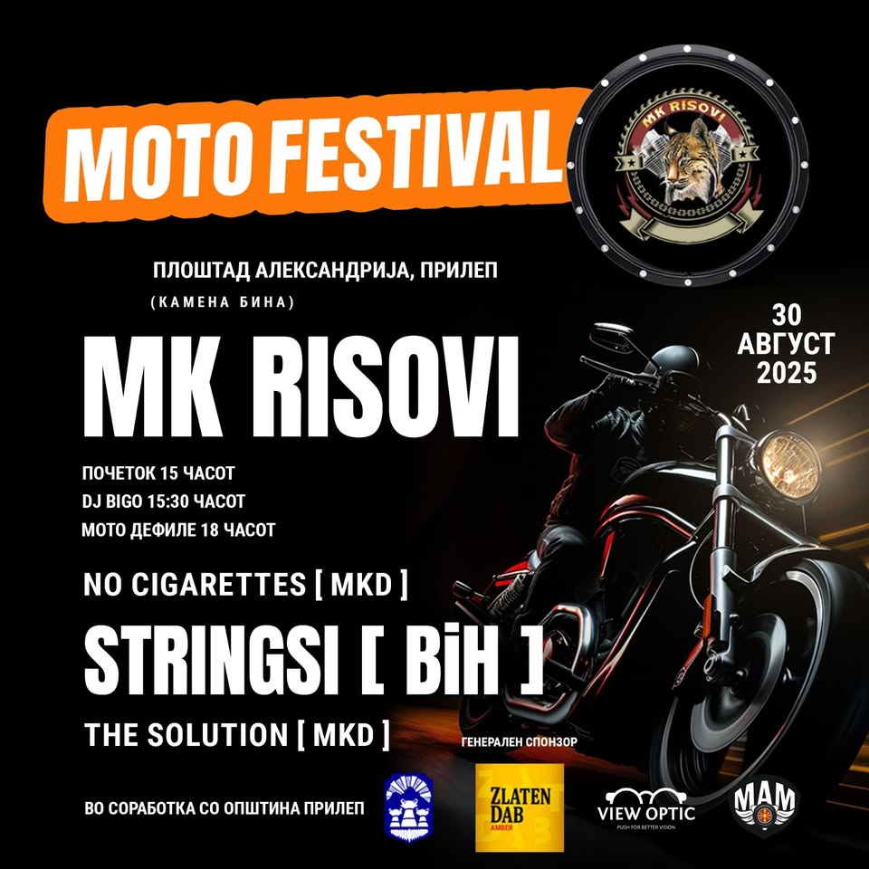 За сите љубители на моторите и добрата музика, на 30-ти август во Прилеп ќе се одржи незаборавниот Мото Фестивал Рисови 2025!