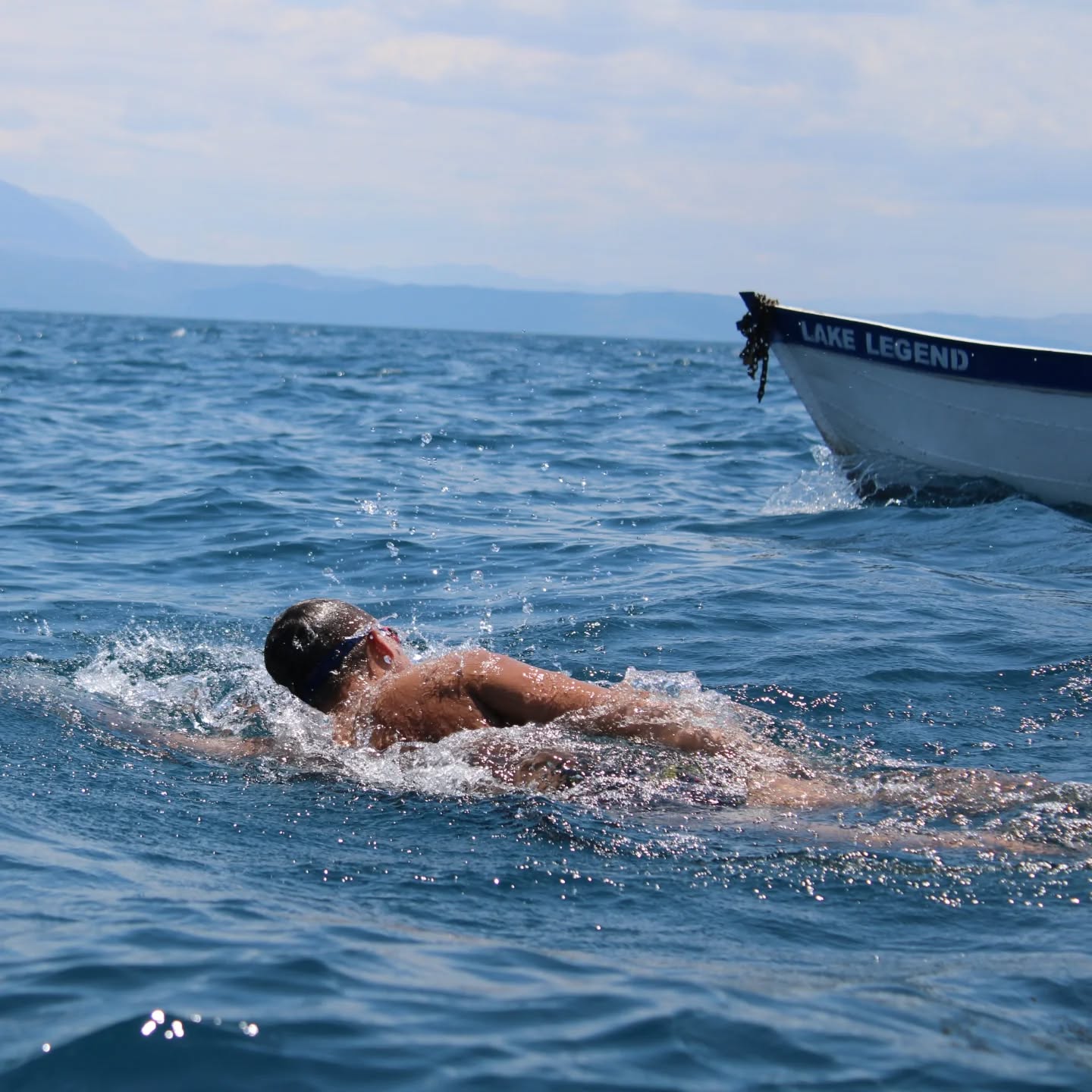 Синоќа, околу 21 часот Марко Пејчиновски повторно го преплива Охридското Езеро