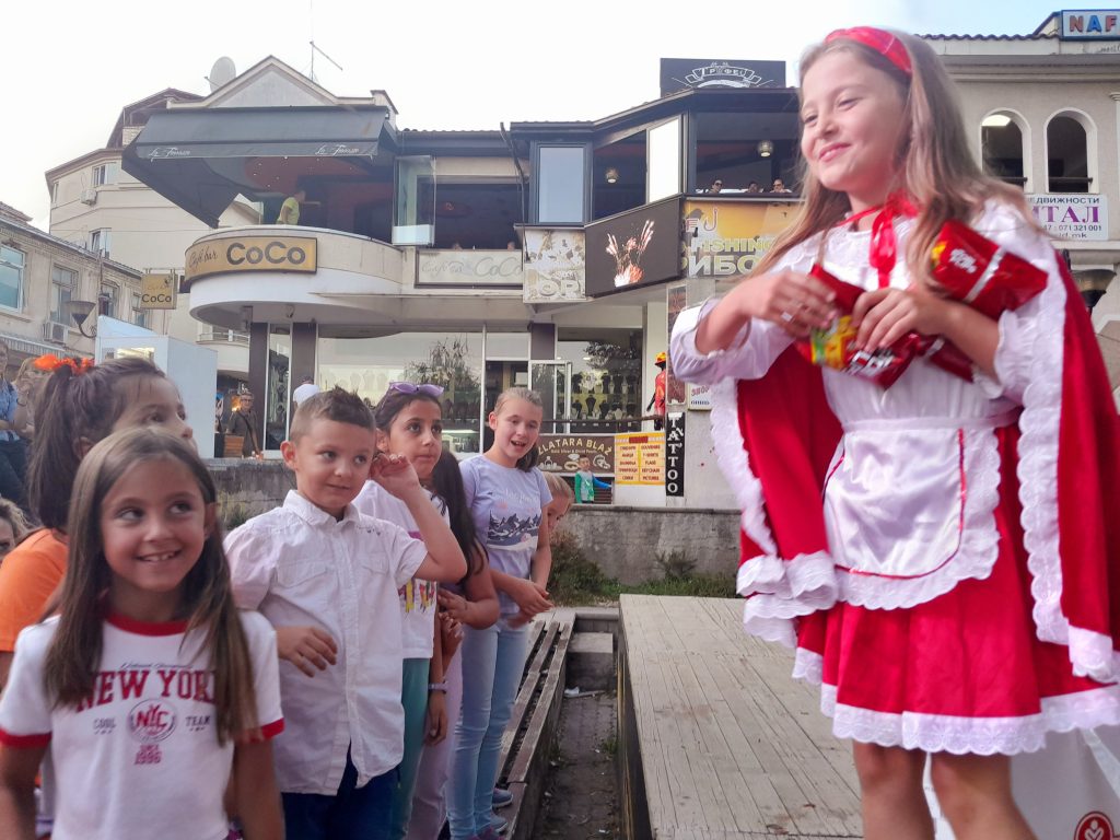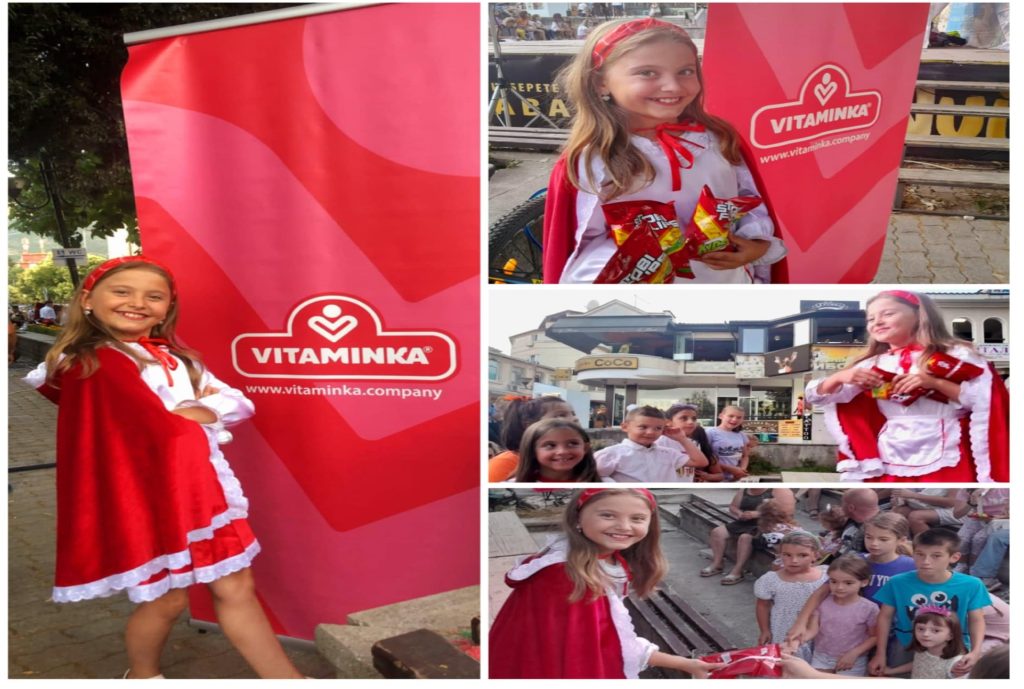 Паралелно со театарската претстава за деца, охриѓани и туристите уживаа во веселиот, сладок свет на вкусови од “Витаминка”, која на посетителите заедно со Црвенкапа, им поделија пакетчиња од највкусниот “Стоби Флипс”.