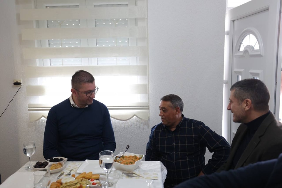 Кај нашиот домаќин Ајхан Демов, во Василево, по повод големиот муслимански празник Рамазан Бајрам. Во духот на заедништвото, соживотот и почитта, со луѓето со кои ги делиме и радостите и предизвиците. Нека е честит празникот, со мир, здравје и благосостојба во секој дом – порача премиерот Мицкоски.